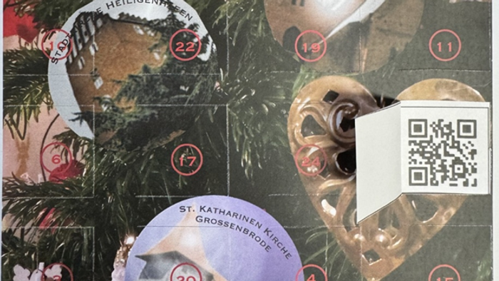 Jeden Tag öffnet sich ein Türchen mit einem "QR-Code". Mit der Foto-App Ihres Handys können Sie einfach darauf klicken und so jeden Tag bis Weihnachten ein kleines Video anschauen.