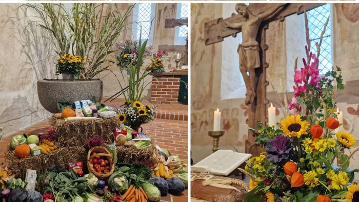 Danke auch an alle fleißigen Hände, die mit Blumen, Früchten und Getreide die Kirche geschmückt, den Gottesdienst gestaltet und das Beisammensein möglich gemacht haben. So wurde Erntedank zu einem lebendigen Zeichen dafür, wie gut es tut, zu teilen und miteinander zu feiern.